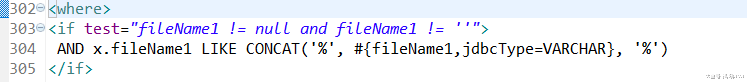 AND x.fileName1 LIKE CONCAT('%', #{fileName1}, '%')