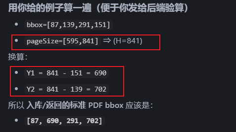 [x1, y1, x2, y2],即这个区域左上角和右下角的位置。当我们要将其转换到PDF坐标系时,需要调整这些值,特别是y坐标的值,因为两个系统的y轴方向相反。