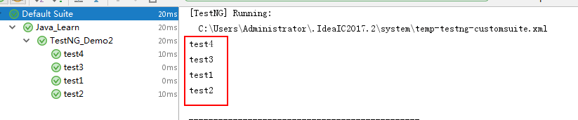 上面四个测试用例,我设置的优先顺序是test4->test3->test1->test2,运行一下,看看是不是这个效果。